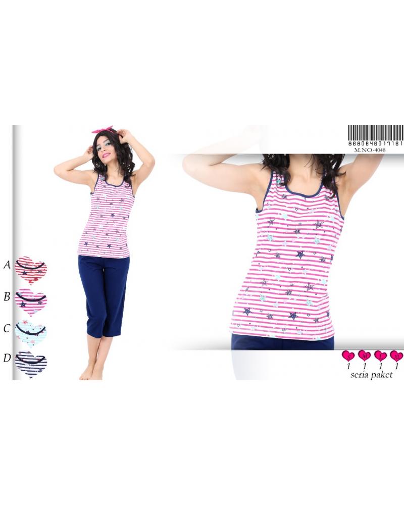 Артикул: 9840003 Пижама с капри майка полоску Звездочки (L, S, M, XL)
