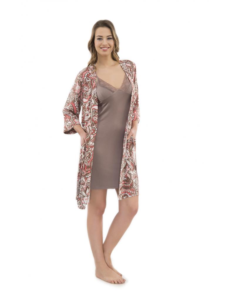 Артикул: 313604 Гарнитур 2-ка халат на запахе туника на широких лямках Узоры (L, M, S)