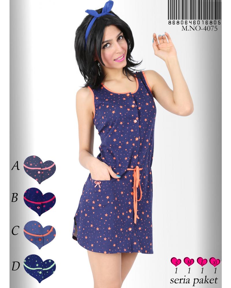 Артикул: 9512002 Халат на пуговицах на кулиске с кармашком без рукавов Звездочки (M, S, L, XL)