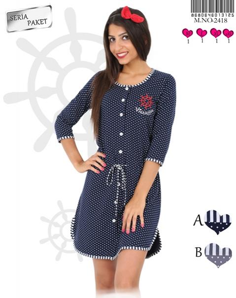 Артикул: 9514012 Халат на пуговицах 3/4 трикотажный в горошек MARINE (XL, S, M, L)