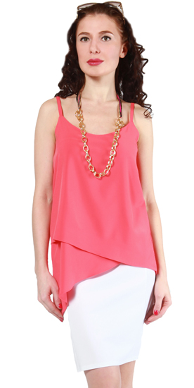 ЛАКОНИЧНЫЙ АРХИТЕКТУРНЫЙ КРОЙ! Двухслойный топ с фигурной линией низа. Бретели с регулировкой длины. Силуэт свободный трапециевидный. Отлично смотрится с юбкой-карандаш ЛОРИ и с узкими брючками ГЛИТЕРАТИ.