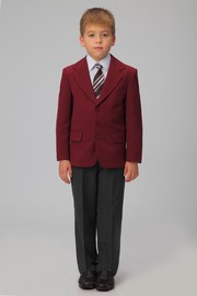 Пиджак — основной элемент классического мужского костюма. Данная модель предназначена для мальчиков младшей школьной возрастной группы. Классический силуэт, традиционная форма лацкана, прорезные карманы с клапанами, скругленные борта делают изделие элегантным и актуальным для юных джентльменов. Все необходимое поместится во вместительном внутреннем кармане. Привлекающим внимание акцентом стала подкладка модного цвета «баклажан». Состав костюмной ткани — 35% вискозы и 65% полиэфира — обеспечивает комфортную носку и простоту в уходе за изделием. Модель изготавливается в классических для школьной формы цветах — темно-синем, черном и бордовом