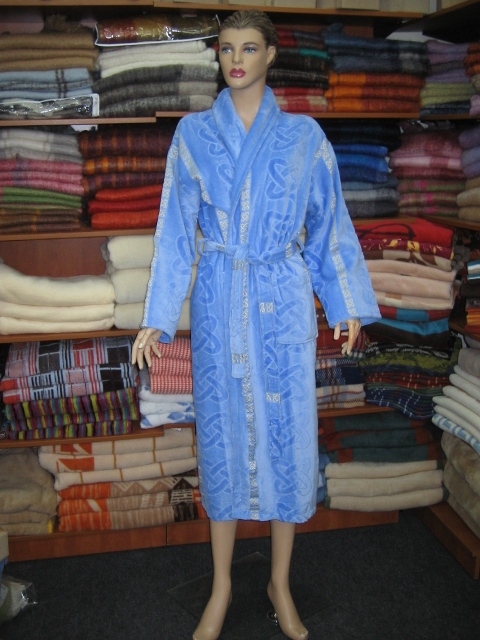 Артикул: 140303(S/M) Халат махра-велюр с отделкой длинный голубой
