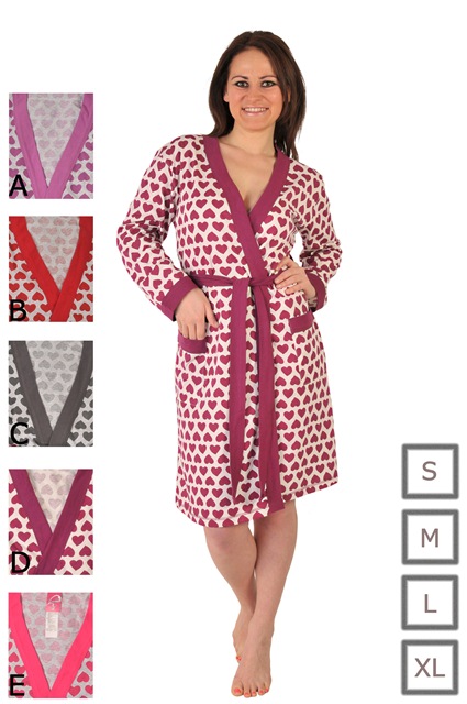 Артикул: 9514010 (S,M,L,XL) Халат длиный рукав на запахе с карм трикотаж Сердца