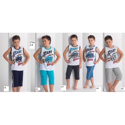 Артикул: 1724 (1;2;3;4;5;6;7;8) Костюм капри майка Гоночная машина мальч