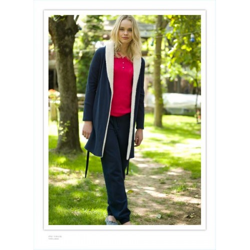 Артикул: 48056703 (M) Жакет с поясом на запахе трикотаж с мех отделкой тем синий